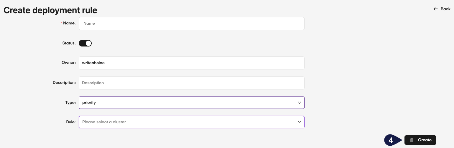 - Type: Select the deployment rule type from the dropdown menu. The options are random or priority.