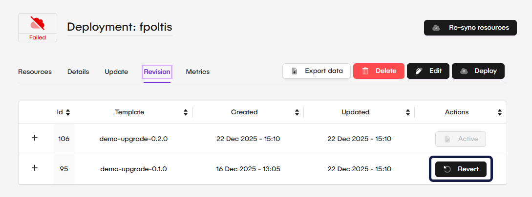 - Navigate to the Deployments list and select the deployment you wish to update.
